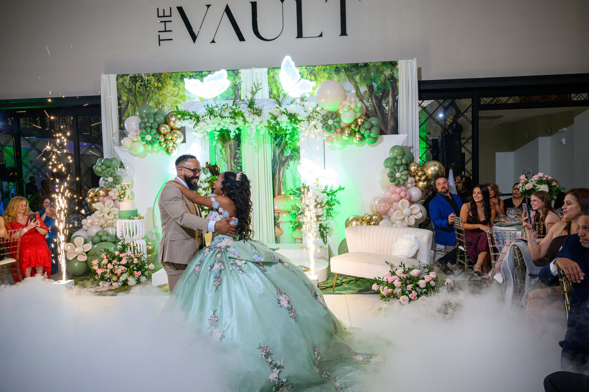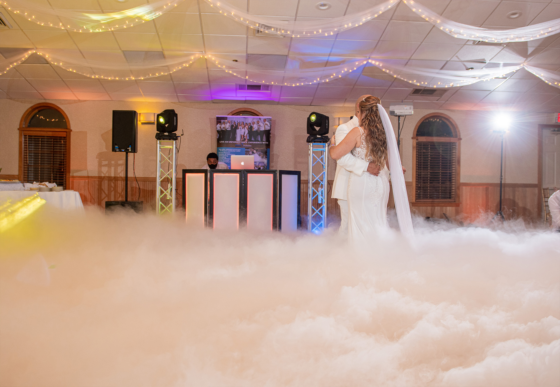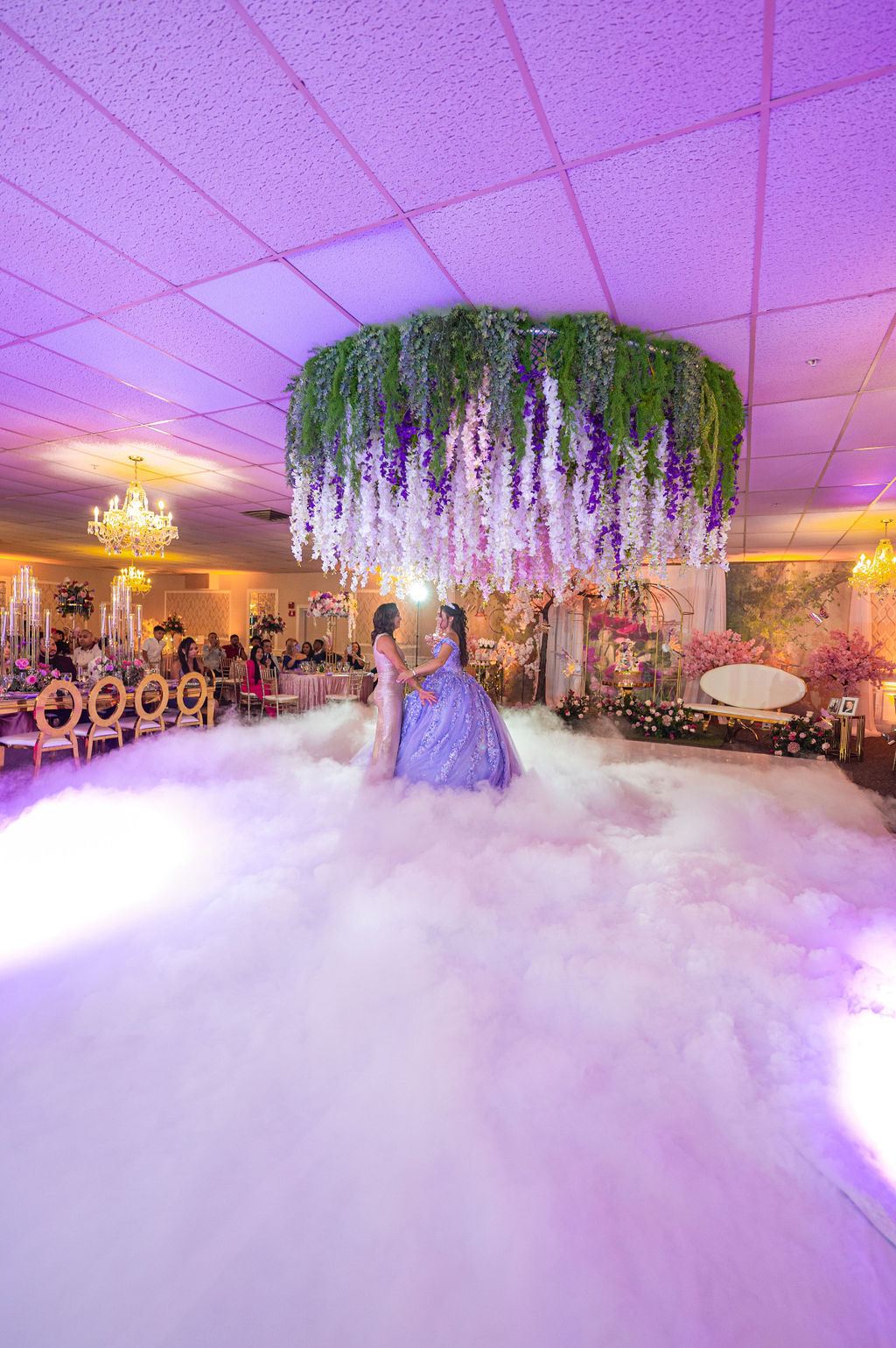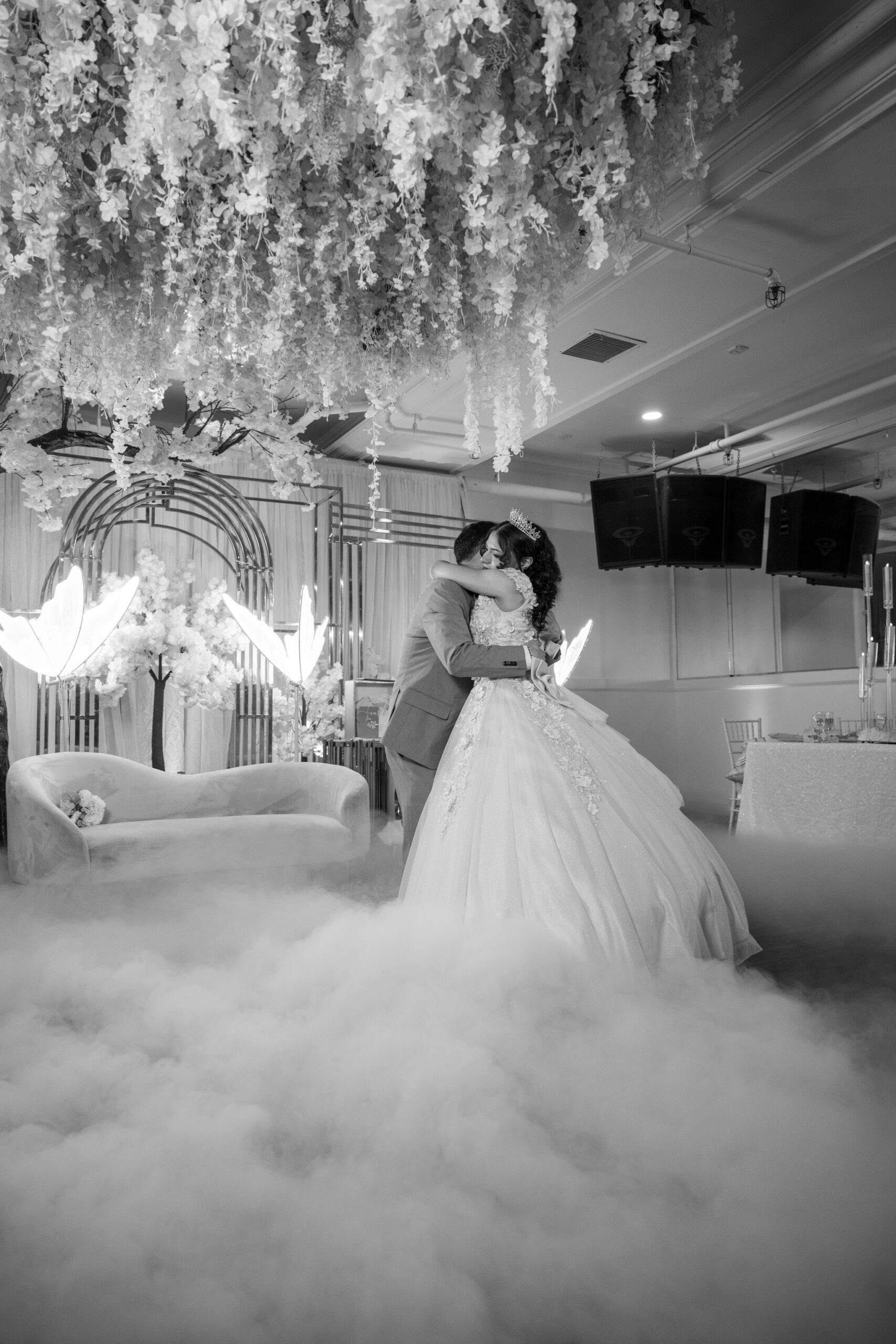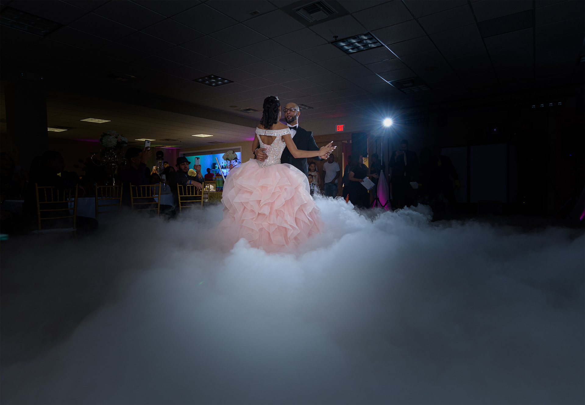 Transforma tu primer baile o momento especial con un hermoso efecto de nube baja que crea una atmósfera mágica y romántica.
